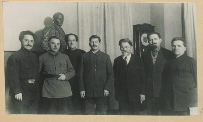 В день пятидесятилетия Сталина. Слева направо: Г. К. Орджоникидзе, К. Е. Ворошилов, Н. В. Куйбышев, И. В. Сталин, М. И. Калинин, Л. М. Каганович и С. М. Киров. Москва, 21 декабря 1929 г. Фотография из коллекции собрания фондов музея В. И. Ленина