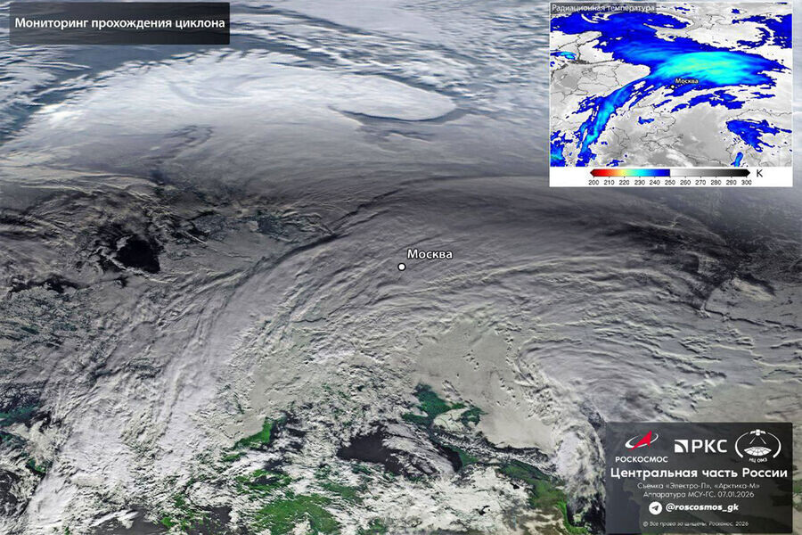 В Роскосмосе показали спутниковый снимок циклона, который принесет в Москву аномальные снегопады. Пик непогоды прогнозируется на 9 января — в этот день в мегаполисе может выпасть больше половины месячной нормы осадков, предупредили специалисты. Рады предстоящему снегопаду? ❤️ — да 😢 — может, хватит уже снега ⭕️ Подписаться | Мы в MAX | Буст