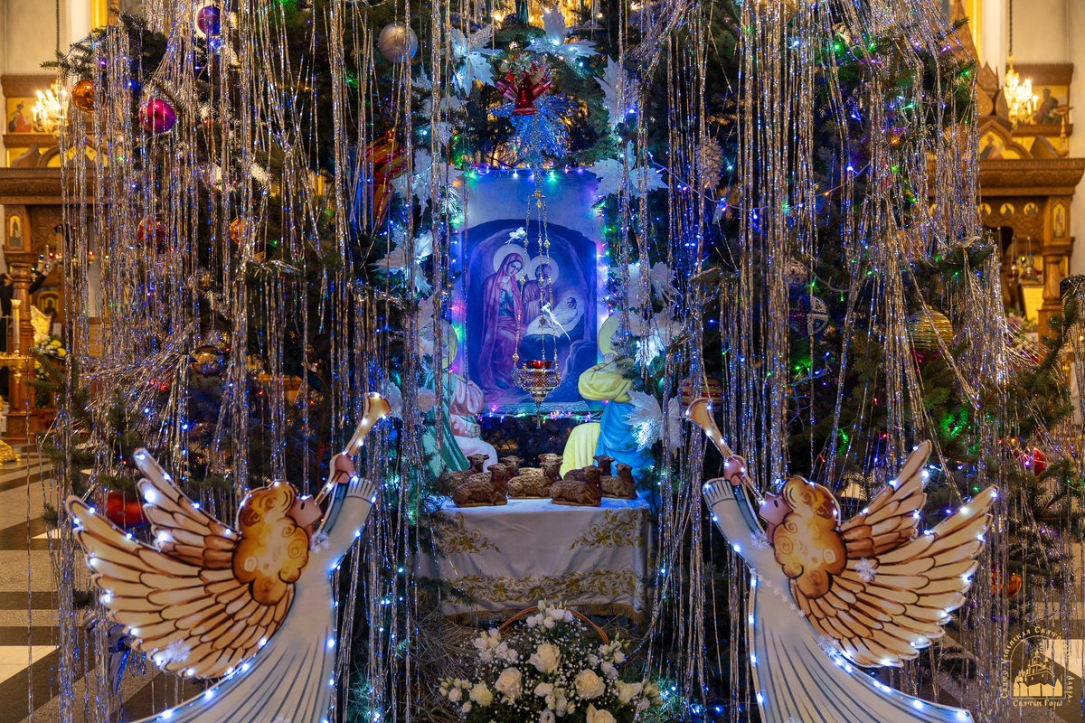 В день светлого праздника Рождества Господа Бога и Спаса нашего Иисуса Христа, 7 января 2026 г., в Успенском соборе Свято-Успенской Святогорской Лавры состоялось соборное праздничное богослужение. В 7:00 началось чтение утренних молитв, затем была отслужена полунощница. По прочтении акафиста Рождеству Христову и часов началась праздничная Божественная литургия, которую соборно совершило духовенство монастыря. Богослужебные песнопения исполняли братские хоры под управлением архимандрита Арсения (Ванюшина) и архимандрита Рафаила (Попова). При этом общеизвестные песнопения Божественной литургии и ектении пели все присутствующие в храме. За богослужениями духовенство и верующие сугубо молились о наместнике Лавры митрополите Святогорском Арсении. По окончании Литургии братские хоры исполнили первые в 2026-м году колядки. Под их пение все присутствующие в Успенском соборе дети получили подарки. В завершение архимандрит Феофан (Люкшин) поздравил всех с праздником и пригласил на праздничную тр