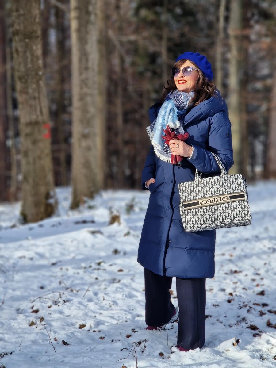 Зима — время тепла, уюта и стильных образов, которые согревают и поднимают настроение. Для женщин 50-60 лет особенно важно сочетать комфорт и элегантность, выбирая одежду, которая подчеркнёт достоинства и создаст уютный ансамбль. Представляю подборку из 10 зимних образов, которые помогут выглядеть модно и чувствовать себя уверенно зимой. Пуховик длины миди синего цвета - универсальный выбор, подходящий практически любой женщине. Синий берет добавит образу французского шика, а голубой шарфик - освежающую нотку. Для самых холодных дней подойдёт образ с бежевой шубой Тедди, белыми брюками и свитером в тон. Молочный шарф и шапка идеально контрастируют с бежевым верхом. Ботинки-снегоходы из эко-меха обеспечивают комфорт и защиту от снега. Коричневые перчатки и сумка - гармоничное завершение ансамбля. Розовая рубашка + худи голубого цвета+ светлая дубленка в стиле авиатор +джинсы + угги +бежевая шапка+ вместительная сумка - непринужденный и комфортный ансамбль для повседневных дел. Зелен