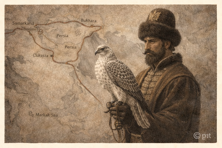 Соколиная охота не возникла в Русском царстве внезапно и не была заимствована в готовом виде. Она прошла долгий путь, меняясь вместе с культурами, народами и ландшафтами. К моменту, когда соколиная охота стала частью русской государевой традиции, за ней уже стояли века накопленного опыта, отработанных приёмов и устойчивых представлений о работе с ловчей птицей. Этот путь пролегал через Восток, степи и пограничные земли, постепенно формируя ту форму охоты, которая укоренилась на Руси и приобрела собственные черты. Ранние формы соколиной охоты сложились на Востоке, где ловчие птицы использовались не только для добычи, но и как символ власти и статуса. В странах Ближнего Востока соколы и кречеты ценились за скорость, выносливость и редкость, а владение ими подчёркивало высокий ранг владельца. Здесь сформировались первые устойчивые приёмы воспитания птиц, способы их содержания и понимание того, что охота возможна только при строгом контроле над состоянием ловчей птицы. Эти знания не были