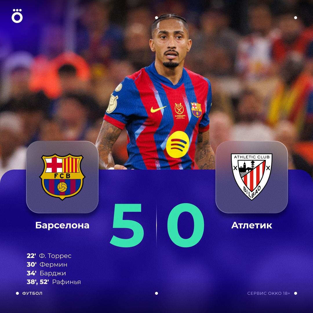 Полное деклассирование «Атлетика». У Рафиньи дубль и один ассист, у Барджи и Фермина — наоборот. Сияют 💫