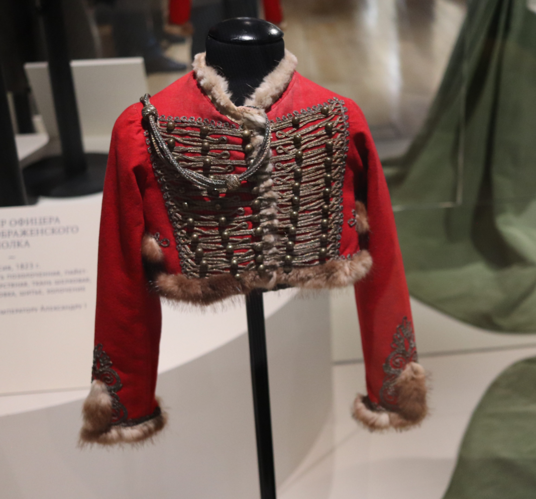 Хожу по выставке, смотрю и фотографирую экспонаты. Слышу вопрос, повисший без ответа: - А почему мундиры все такие маленькие?! Отвечаю: - Потому что это детская форма. Великие князья с детства считались шефами разных полков и носили их форму. Вон, посмотрите на гусарский ментик. Он вообще сшит на грудного ребенка. - Ой, правда, какой он крошечный! - Ну так видите, написано, ментик сшит в 1818 году. Это – год рождения Александра II. При рождении он еще не стал цесаревичем, потому что даже его отец, Николай Павлович еще не считался наследником престола, а был всего лишь великим князем. Но Александр I сразу после рождения назначил младенца Александра Николаевича шефом лейб-гвардии Гусарского полка. А раз великий князь – шеф гвардейского полка, то ему полагается соответствующая форма. Вот и сшили гусарский ментик на грудного ребенка. И нет, это не как в наше время детей наряжают на 9 мая в костюмы, напоминающие военную форму. Это настоящий мундир, а кроха-великий князь вообще-то с самого р