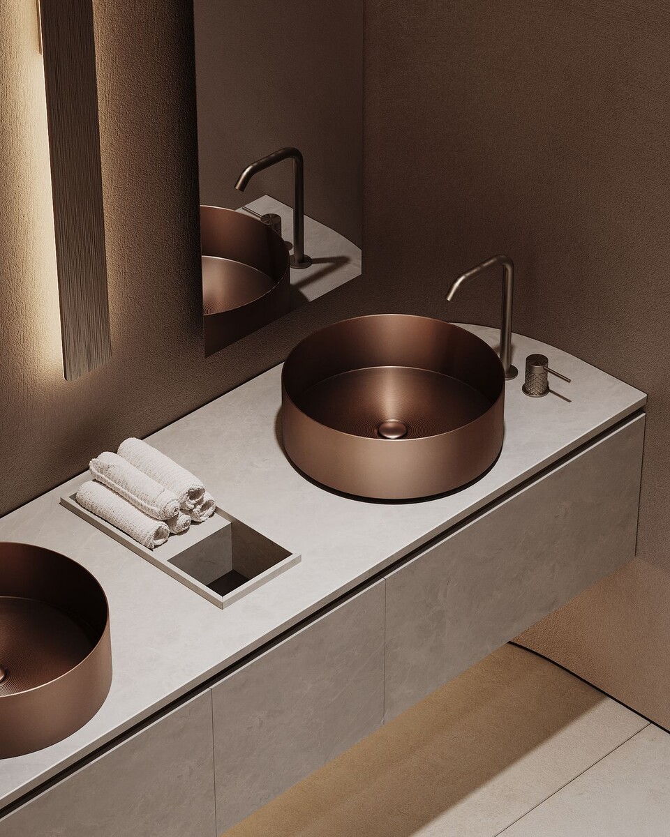 Copper Brushed PVD — теплый медный оттенок, который привносит уют и создает акцентный элемент в интерьере.