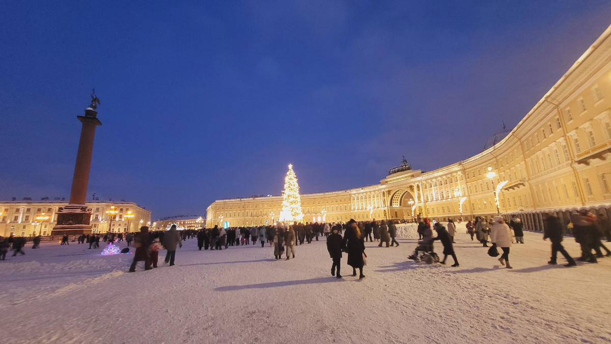 Не устаю любоваться на Александрийский столп, арку Главного штаба и Зимний дворец. И огромная елка мне тоже очень понравилась.