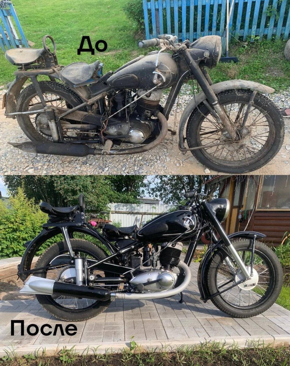 Донор был в среднем состоянии, комплектация 85-90 процентов. С мотоциклом производился ряд операций -деффектовка -сварочные работы -пескоструй -покраска -кап ремонт ДВС -переборка колес -замена РТИ -изготовление проводки Мотоцикл реставрировался без перехрома для сохранения бюджета заказчика. #иж49 #мотосевер #реставрациямото
