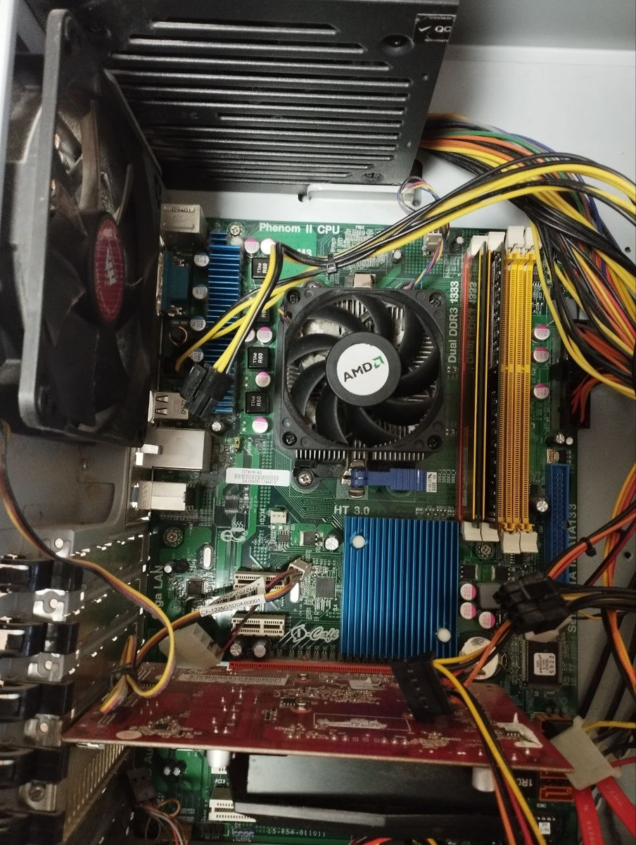 По объявлению купил системник. Без каких-либо ожиданий. Просто ради экспериментов. Привлекли две вещи: копеечная цена и платформа на поколение выше моей первой сборки из хлама. Я был готов к тому, что сборка вряд ли запустится. Но каково же было мое удивление, когда выяснилось, что комп абсолютно рабочий. Правда есть пару нюансов… На одной из фотографий был снят кулер процессора. Если радиатор снимали, значит, с компьютером что-то было не так и его пытались реанимировать. Правда по телефону продавец уверял, что компьютер рабочий: «нужно просто переустановить Windows». Проверить работоспособность компьютера возможности не было. Во-первых, винды на винчестере нет — включить не получится. Во-вторых, владелец отдавал мне комп не в квартире, а из багажника авто на стоянке. Он открыл боковую крышку корпуса и предложил все осмотреть перед покупкой. Цена копеечная, и я был готов, что внутри может быть хлам, поэтому взял не глядя. Уже дома я начал с первого пробного запуска. Полностью отключил