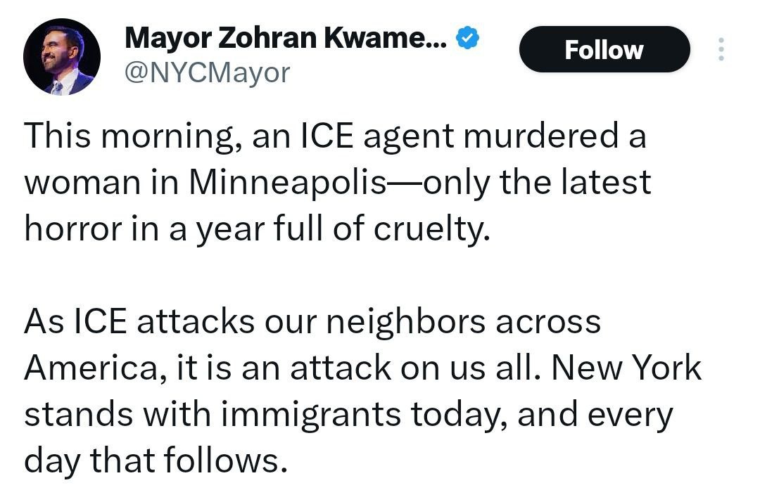 Mamdani chimes in: 'this morning, an ICE agent MURDERED a woman in Minneapolis'