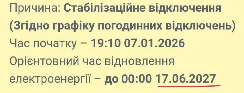 Свет в Днепропетровске дадут к 17 июня 2027 года, - сообщается на сайтах ДТЭК