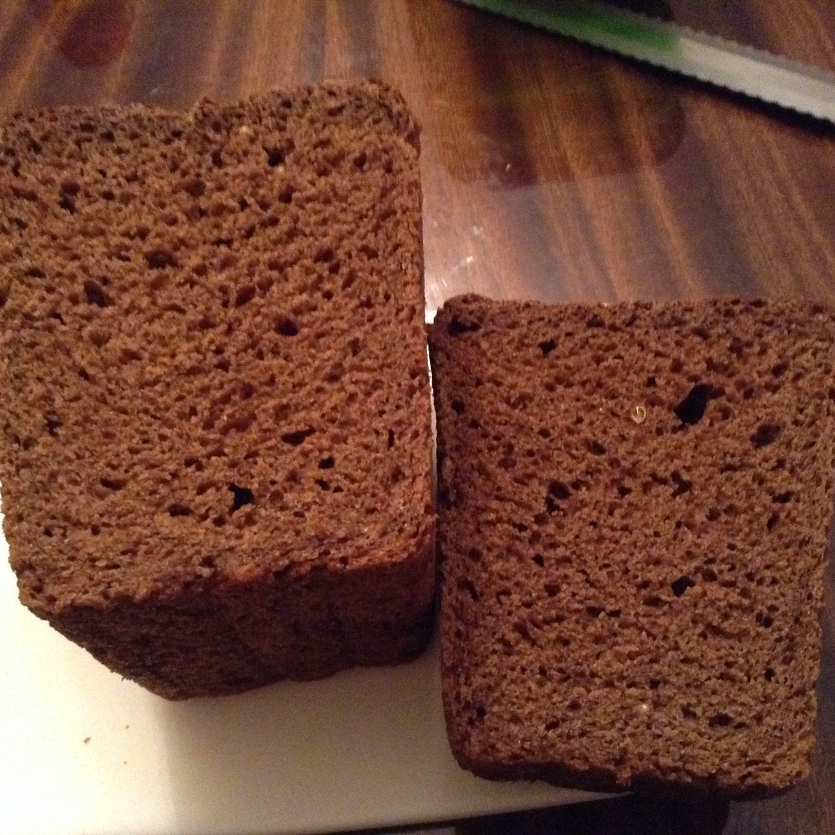 Три буханки вылезли с трудом, пришлось отдирать, к поверхности форм очень много прилипло теста тонким слоем, но сама форма хлеба не пострадала, только одна буханка была внутри треснутая.