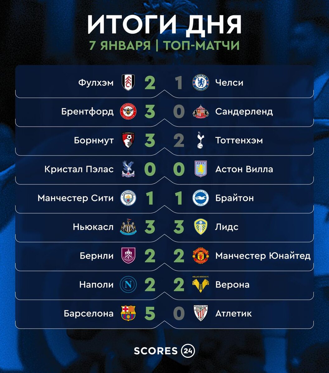 ! День получился насыщенным — с камбэками, неудачными дебютами и громкими развязками. Многие гранды потеряли очки, а кто-то, наоборот, подтвердил своё превосходство. Коротко подводим черту: 🇮🇹🇮🇹 Наполи показал характер — отыгрался с 0:2 против Вероны, несмотря на два отменённых гола, но победу вырвать так и не удалось. 🏴🏴 Дебют Росеньора в Челси не задался — поражение 1:2 и странная ситуация с красной карточкой для Кукурельи. Старт вышел нервным. 🏴🏴 Манчестер Юнайтед тоже без победы в первом матче с новым тренером, но хотя бы удалось зацепиться за ничью. Пока осторожно. 🏴🏴 У Манчестер Сити уже третья ничья подряд… Меняем тренера? 😅 (шутка, конечно) 🏴🏴 Ньюкасл — Лидс: безумие тура. Сумасшедший матч завершился победой «сорок» 4:3, а решающий гол Харви Барнс забил на 102-й минуте. Футбол в чистом виде 🔥 🇪🇸🇪🇸 Барселона — 👑, без обсуждений. Разгром 5:0, выход в финал Суп