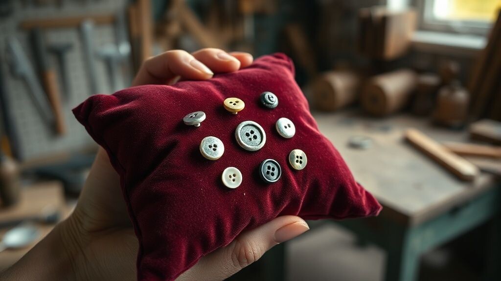 Всё началось с одной. С той самой, тёмно-бордовой, которую она нашла на полу в своей же прихожей. Она подняла её, поднесла к свету, и холодный гладкий перламутр отразил её собственный, чуть растерянный взгляд. Она не спросила. Молча унесла в мастерскую и воткнула в подушку. Укол был резким и точным. Потом появилась вторая. Серая, металлическая, с крошечными насечками по краю. Она оторвала её от рубашки, что забыли в шкафу. Действие было механическим, почти ритуальным: щелчок ножниц у основания нитки, лёгкий хруст ткани, и пуговица оставалась в её пальцах, ещё хранящая тепло чужого тела. А подушка принимала её, и бархат скрывал след укола.