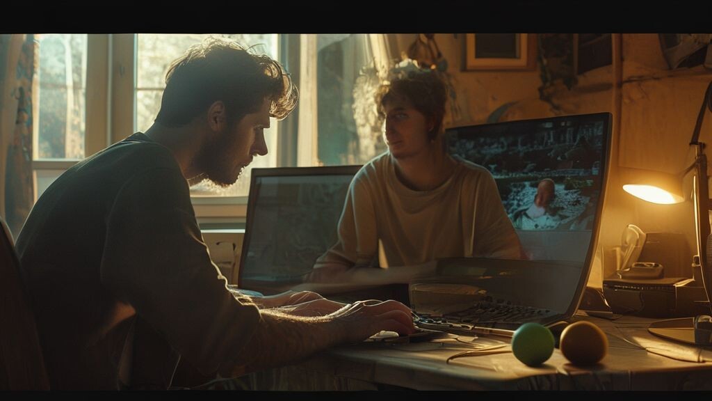 Он отправил и поставил телефон экраном вниз. На экране ноутбука всё ещё была открыта его фотография с друзьями. Он смотрел на своё смеющееся лицо и пытался вспомнить, что чувствовал в тот момент. Настоящую радость или её тень. За окном медленно садилось солнце, окрашивая комнату в тёплые, прощальные тона. Он ждал. Мобильный лежал молча. Но тишина теперь была другой — не как стена, а как затянувшаяся пауза в трудном, но важном разговоре, который только-только начался.