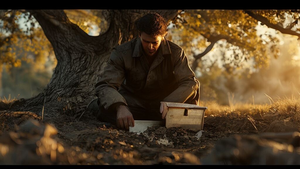 Столкнувшись с чем-то твердым, я поначалу обрадовался – крупный камень, корень. Но звук был не тот, не глухой, а звонкий, металлический. Я расчистил землю руками. Это была не капсула, которую я купил – простой пластиковый цилиндр. Это был стальной ящик, угловатый, тяжелый, с проржавевшими кромками и заклинившей защелкой. Чужая тайна, похороненная в нашей земле. Любопытство пересилило недоумение. Я поддел крышку лопатой. С резким скрипом она поддалась.
