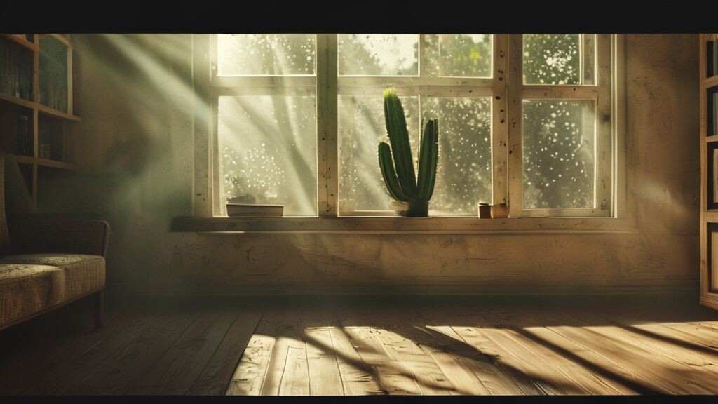 Лучи утреннего солнца, жёсткие и пыльные, пробивались сквозь грязь на окне и разрезали на полосы ковёр в гостиной. Я лежал на диване, укрытый старым пледом, и наблюдал, как мельчайшие частицы пыши пляшут в этих световых колоннах. В соседней комнате раздавался привычный шум: шелест ткани, стук дверцы шкафа, шаги на каблуках. Катя собиралась. Мы не разговаривали с утра. Этот ледяной вакуум между нами длился уже неделю, и я дышал им, как удушающим газом. Её шаги приблизились к гостиной. Я прикрыл глаза, изображая сон, но следил сквозь ресницы. Она остановилась у большого книжного стеллажа, где между потрёпанных томов Достоевского и путеводителей по Греции стоял невзрачный зелёный кактус в грубом глиняном горшке. Колючий шар размером с яблоко. Без имени. Подарок её коллеги год назад, который мы оба тут же забыли. Катя аккуратно взяла его обеими руками, бережно, будто это была хрустальная ваза. Я никогда не видел, чтобы она так осторожно что-то брала. Она повернулась к окну, и её профиль н