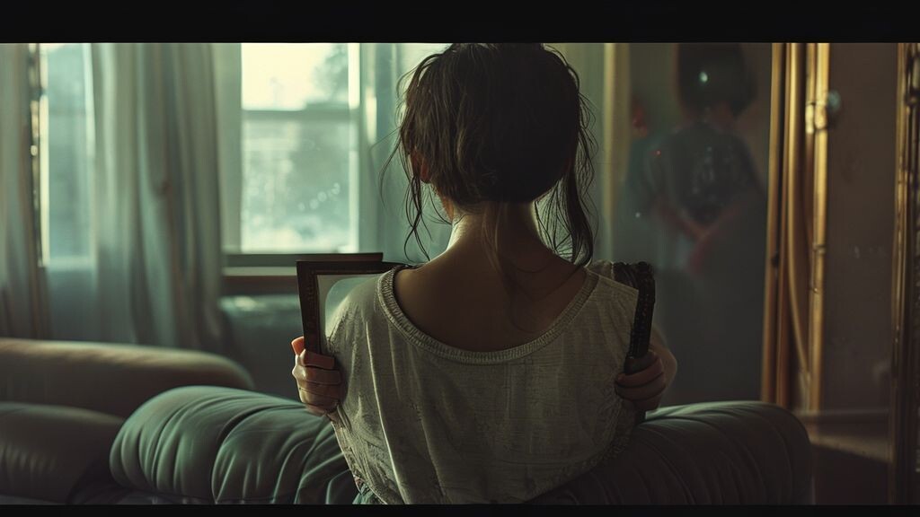 Я застыл на пороге, не решаясь войти. Мой взгляд упал на коридорное зеркало, в котором отражался фрагмент комнаты. Лиза сидела на краю дивана, спиной ко входу, сгорбившись. Ее светлые волосы падали на лицо, плечи вздрагивали. В руках, прижатых к груди, она сжимала старую картонную фотографию в дубовой рамке – ту самую, что обычно стояла на верхней полке книжного шкафа в кабинете, среди других реликвий, до которых мы редко дотрагивались.