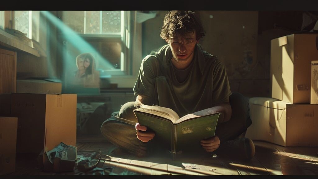 Картонная коробка пахла пылью и временем, точнее, тем специфическим запахом, который остается на вещах, долго пролежавших в чулане или на антресолях. Алекс смахнул с крышки сероватый налет, от которого на кончиках пальцев осталось липкое ощущение. Надпись маркером, сделанная рукой его матери, уже выцвела: «Школьное. Лена.» Он приподнял скотч, который за десятилетия утратил клейкость, и крышка отвалилась сама, с тихим вздохом.