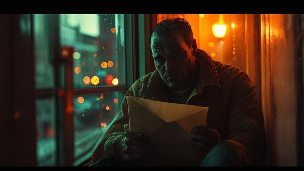 Она остановилась на пороге гостиной, силуэт чётко вырисовывался на фоне светящегося коридора. Я медленно соскользнул с подоконника, и конверт в моей руке зашуршал.