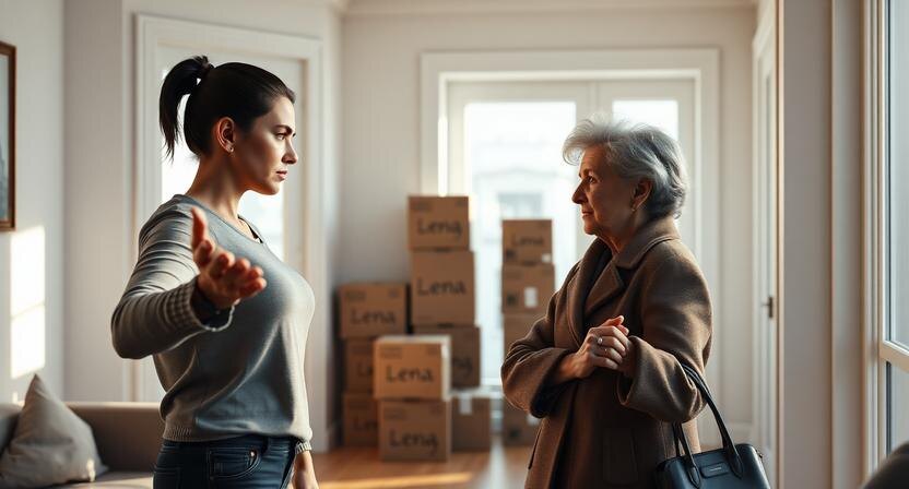 Валерия остановилась посреди коридора, не разуваясь. Куртка сползла с плеча, ключи так и остались зажаты в пальцах. Коробки были аккуратно подписаны чёрным маркером: «Лена. Книги», «Лена. Одежда», «Лена. Всякое». Почерк она узнала сразу — свекровь. У Людмилы Сергеевны был этот фирменный нажим, будто каждую букву она вдавливала в картон с воспитательной целью.