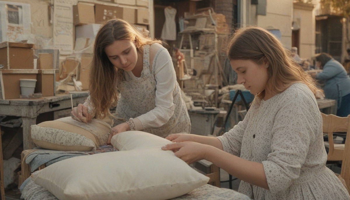 Солнце уже клонилось к закату, окрашивая харьковские улицы в мягкие золотистые тона. Лена и Яна, две молодые хохотушки, работали в небольшой мастерской по реставрации подушек, что приютилась в тихом переулке неподалеку от центрального рынка. Золотые руки девушек, казалось, творили чудеса, возвращая к жизни старенькие, видавшие виды подушки, на которых спали целые поколения.