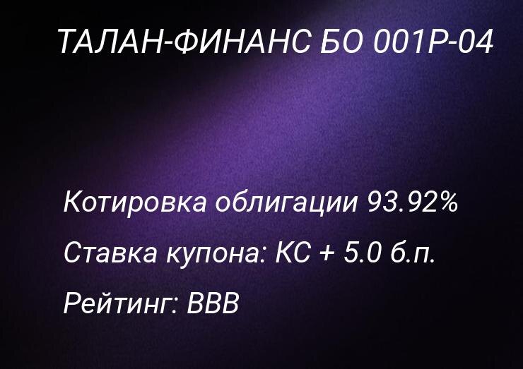 🔹 Облигация: ТАЛАН-ФИНАНС БО 001Р-04 Флоатер