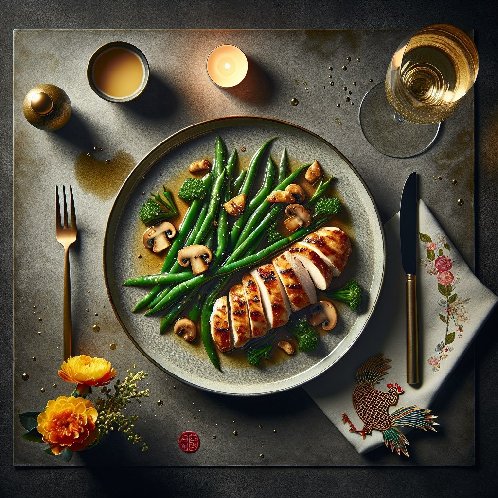 Название блюда: Куриная грудка с зеленой фасолью и грибами по-китайски