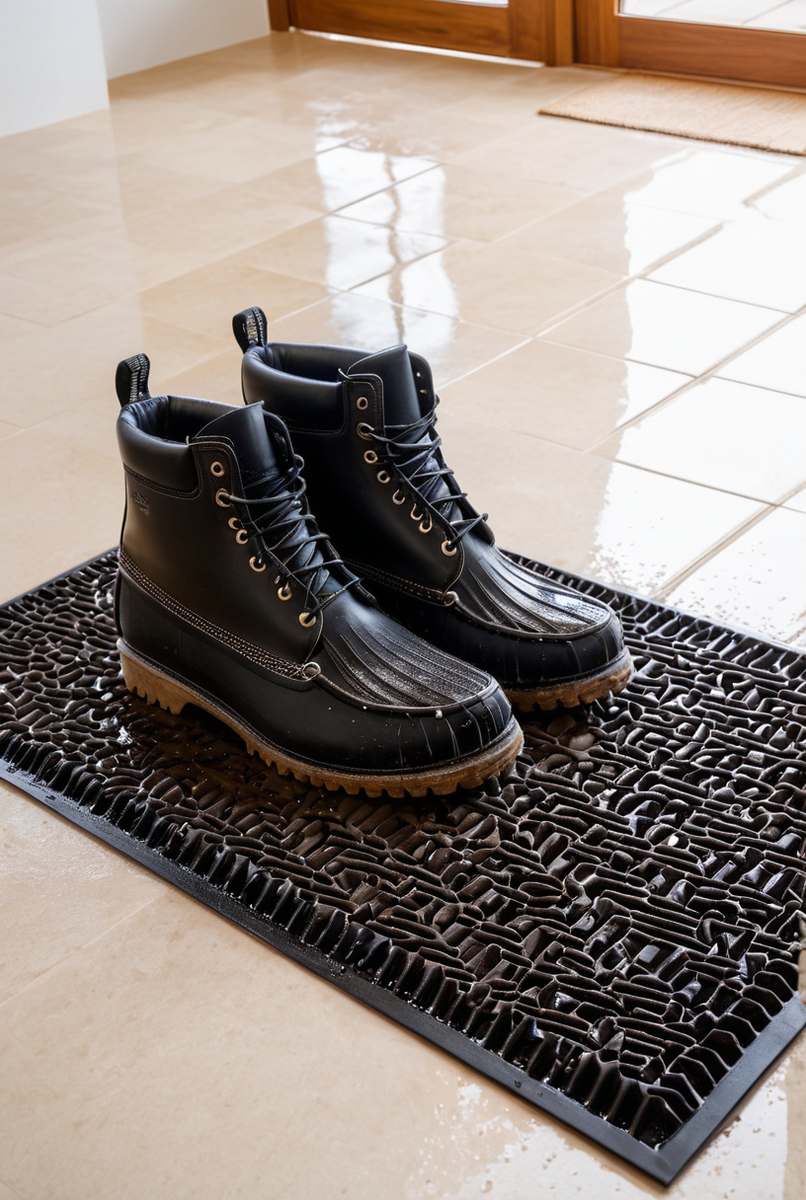 Правильно подобранный размер поможет организовать хранение обуви и порядок в прихожей. Измерьте свою входную зону и определите, сколько пар уличной обуви должно помещаться. Идеальный коврик для обуви вмещает обувь семьи, не мешая в коридоре. Важно, чтобы мокрые ботинки не касались друг друга – так они быстрее высохнут, а у вас будет чистый пол в любую дождливую погоду.