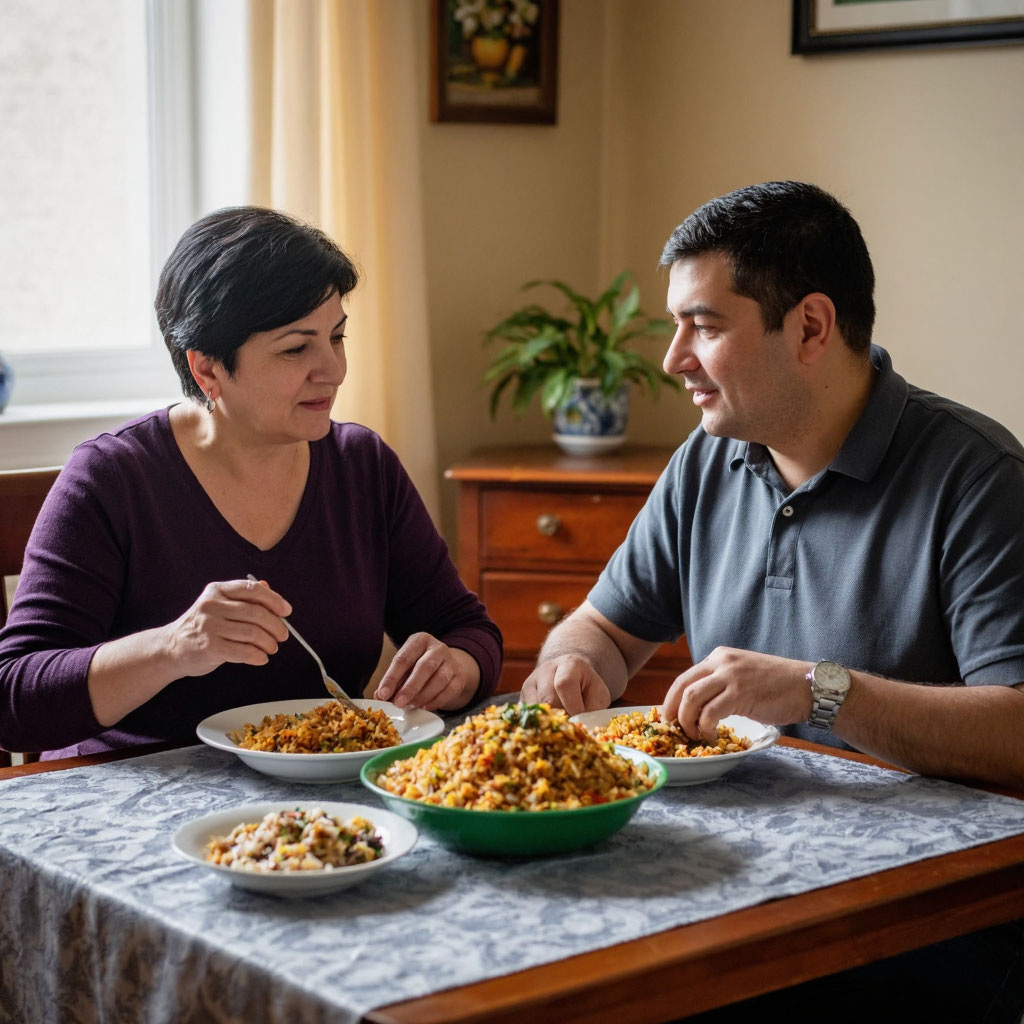 К обеду Анна Петровна решила взять кулинарную инициативу в свои руки. "Я сегодня приготовлю твой любимый плов, Дмитрий! – объявила она с энтузиазмом. – Только вот рис я возьму свой, узбекский. Он рассыпчатее получается". Я, честно говоря, уже предвкушал, как буду есть плов, приготовленный по "правильному" рецепту моей тещи. И, надо отдать ей должное, плов получился действительно вкусным.