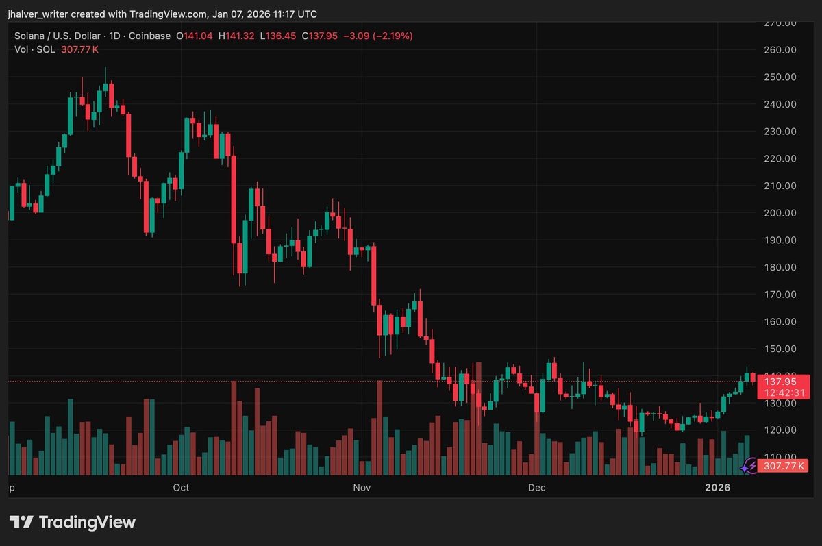 📊 Ключевые моменты: - Ожидается, что SOL наберет обороты к 2026 году благодаря росту ончейн-активности, расширению участия в DeFi и увеличению институционального воздействия через ETF. - Активные адреса Solana выросли с 3,38 млн до 3,78 млн в начале января. - TVL в протоколах на базе Solana увеличился с $8 млрд до $9 млрд. - Годовой объем DEX достиг $1,5 трлн в 2025 году, увеличившись на 57% в годовом исчислении. - Объем торгов SOL-стейблкоинами превысил $780 млрд. - Приложения на Solana принесли $2,39 млрд дохода в 2025 году, рост на 46%. - Собственный доход сети составил $1,4 млрд. - Поставки стейблкоинов удвоились до $14,8 млрд; переводы достигли $11,7 трлн. - Активы под управлением Solana-ETF превысили $1,02 млрд, с притоком почти $800 млн.