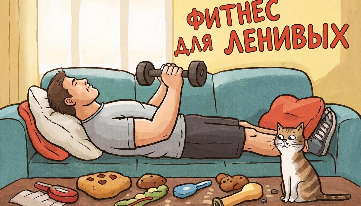 Вы снова обещали себе начать бегать по утрам? Купили абонемент в зал, который посещали ровно два раза? Мечтаете о подтянутом теле, но мысль о потных тренировках вызывает желание закутаться в плед? Друзья, вы не одиноки! Сегодня я раскрою секреты «пассивного фитнеса» — научно обоснованные способы тратить калории, минимально двигаясь. Приготовьтесь узнать, как превратить диван в тренажёрный зал! Часть 1: Диванные тренировки (серьёзно, это работает!) 1. Метод «Микродвижений» Принцип: Делайте крошечные движения каждые 15-20 минут. Просмотр сериала? Напрягайте ягодицы во время заставки Листаете соцсети? Поднимайте ноги на 5 см от дивана Читаете книгу? Сжимайте и разжимайте кулаки Научное обоснование: NEAT (термогенез без упражнений) — мелкие движения тратят до 800 ккал в день! 2. Диванная йога для крайне ленивых Поза «Счастливого лежебоки»: Лёжа на боку, медленно поднимайте верхнюю ногу 10 раз. Перевернуться — это уже кардио. «Диванная планка»: Обопритесь на локти о диван (не вставая!), де