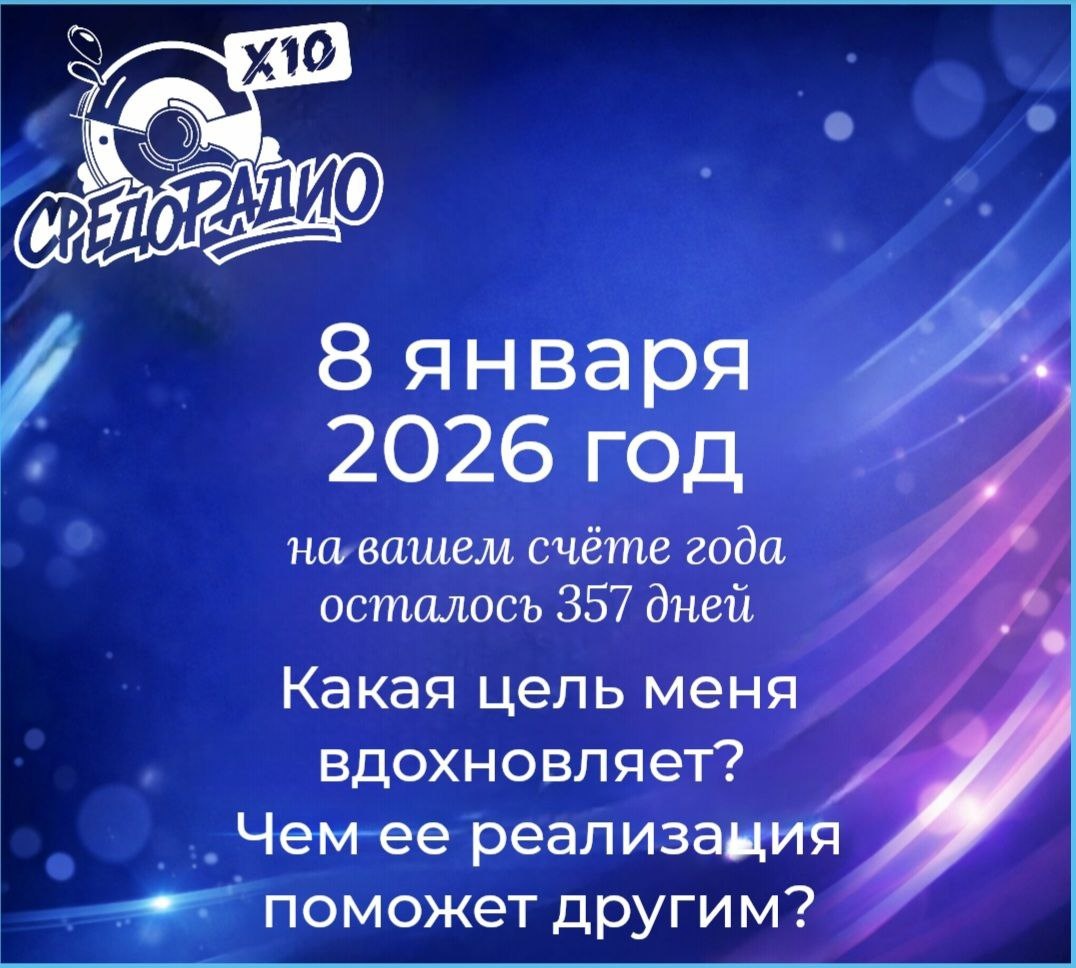 На вашем счёте года осталось 357 дней. Время праздничной тишины сменяется временем первых осознанных шагов. Настоящее вдохновение рождается там, где наши личные цели встречаются с пользой для мира. Сегодня мы настраиваем свои внутренние антенны на созидание и спрашиваем себя: «Какая цель меня по-настоящему вдохновляет? И чем её реализация поможет другим?» СРЕДОРАДИО — это пространство, где ценен голос каждой из вас. Мы хотим не просто знать ваши цели, мы хотим дать им прозвучать! 💬 Поделитесь в комментариях своими размышлениями. 🎙 Записывайте голосовые сообщения! Лучшие аудио-комментарии будут звучать в специальных рубриках в эфире СРЕДОРАДИО. Пусть ваша цель вдохновит тысячи слушателей! 🎧 БУДЬТЕ С НАМИ, СЛУШАЙТЕ СРЕДОРАДИО! 👉 Эфир: myradio24.com/5559 📱 Приложение MyRadio24: инструкция тут 📢 ТГ: https://dzen.ru/id/68347b0544414e3a879796a0 🌍 Группа ВК: vk.com/sredoradio