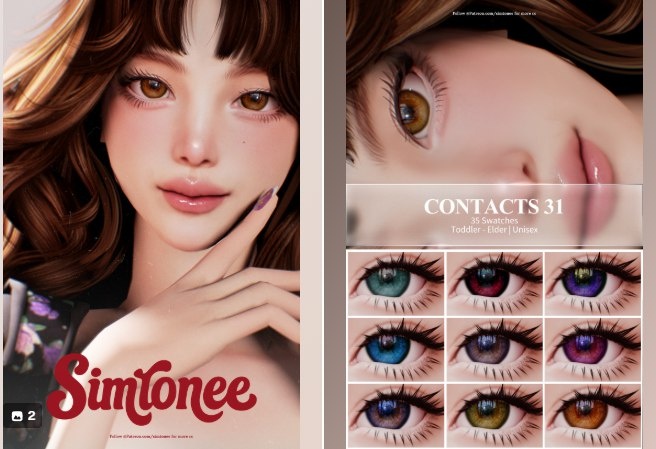 Скачать пользовательский мод Линзы - Simtonee Eye Contacts CC 31 - Simtonee для The Sims 4 - #Глаза@simsfans_ru
