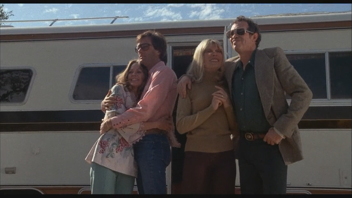 Фильм рассказывает историю двух пар — Фрэнка и Элис (Уоррен Оутс и Лоретта Свит), Роджера и Келли (Питер Фонда и Лара Паркер), — которые отправляются в отпуск на новом автодоме Фрэнка, его гордости и радости. На его доме на колёсах есть все удобства, необходимые для путешествия. В первый вечер Фрэнк паркуется на уединённой просёлочной дороге, и они с Роджером отправляются в путь по пыльным трассам на своих внедорожных мотоциклах. Поначалу всё кажется приятным, но у Келли и её маленькой собачки Джинджер возникает странное предчувствие насчёт этого места... С наступлением темноты у них появляется веская причина для беспокойства. Фрэнк и Роджер замечают в ночи огонь на другом берегу небольшого ручья, напротив того места, где они припарковались. Группа танцующих и поющих людей в мантиях образует круг вокруг костра, пока Фрэнк и Роджер наблюдают за ними в бинокль и угарают. Женщины вокруг костра раздеваются. «Может, это оргия?» Но когда лидер собрания в маске вонзает кинжал в грудь готово