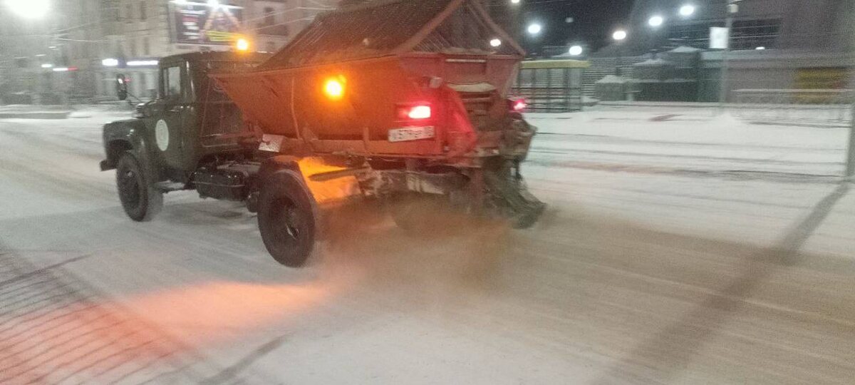 Сотрудники Комбината по благоустройству с 12 часов ночи приступили к посыпке городских дорог и уборке снега.