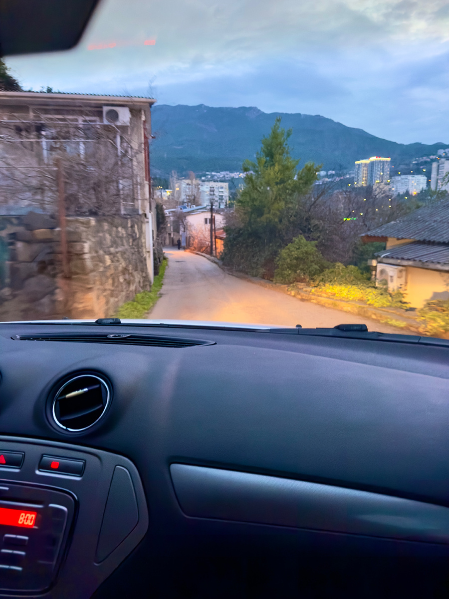 Рано, но не без приключений. Сначала из-за нерабочего навигатора свернули не на том повороте и попали на крутой узкий серпантин частного сектора, где когда-то находилась деревня Дерекой, а после на пешеходном переходе встретили пару, которая, увидев нас через лобовое стекло, улыбалась и радостно махала рукой. Вот теперь думаю: это люди так отблагодарили за то, что пропустили их без светофора, встав на крутой горе, или нас кто-то узнал?