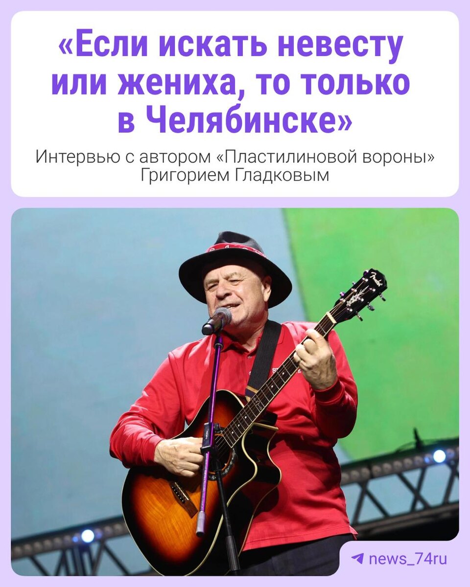 В фирменной шляпе и красной рубашке, с гитарой в руках и широкой улыбкой он бодро выскочил на сцену, ударил по струнам — и огромный зал сразу окунулся в детство. Автор культовых «Пластилиновой вороны» и «Коробки с карандашами», бард и композитор Григорий Гладков был звездным гостем Народной премии 74.RU. В эксклюзивном интервью он рассказал о секрете популярности той самой песни про ворону, связях с Челябинском и гастролях в США ⬆️