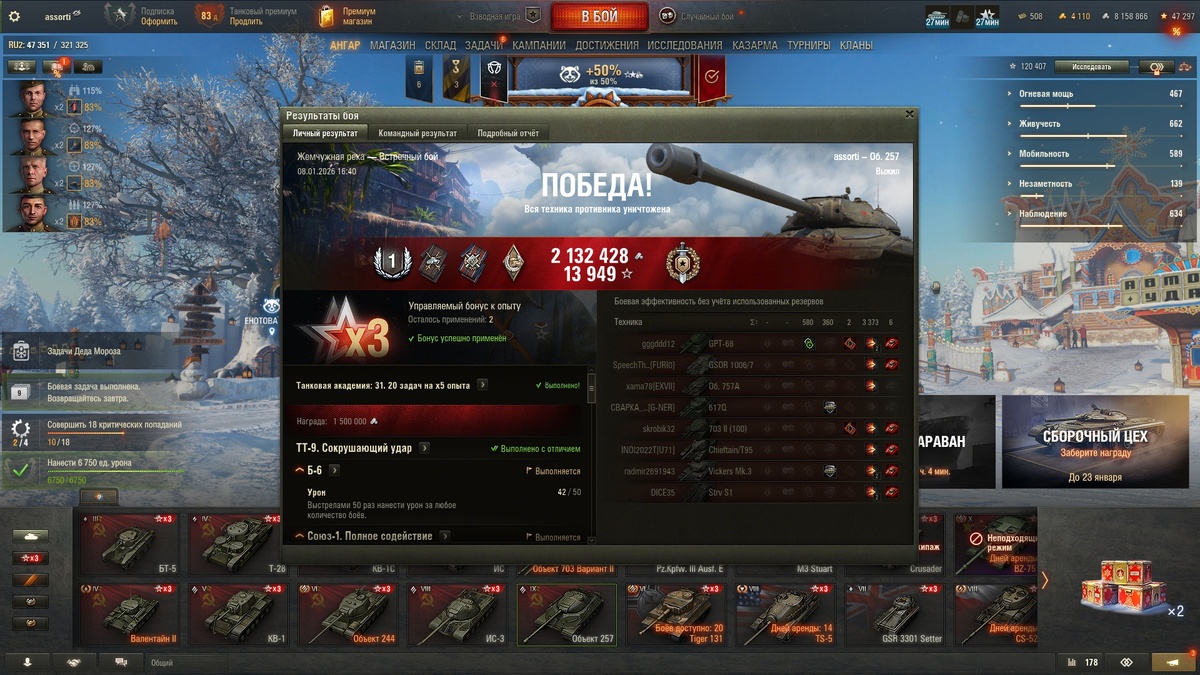 Также не забываем, что до 12 января действуют скидки на снаряжение и оборудование. Для успешного развития аккаунта важно успевать закупиться расходниками во время таких распродаж. Таким образом вы сэкономите 50% стоимости снаряжения в КАЖДОМ бою!