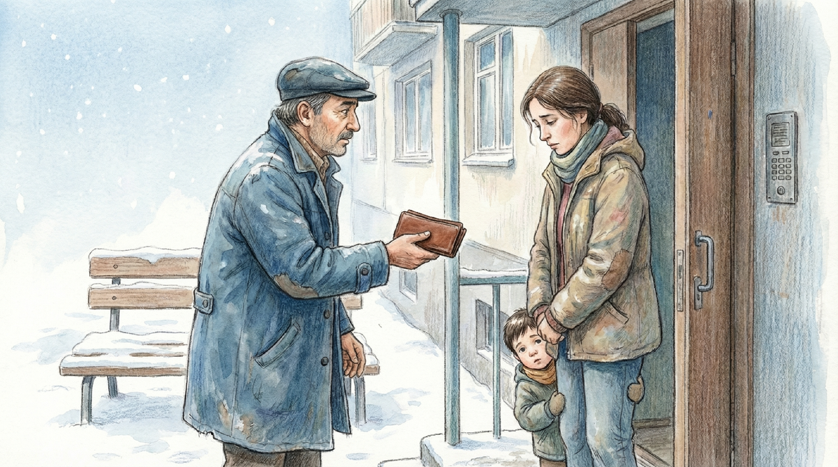 По привычке можно было отнести находку в диспетчерскую и забыть. Но кошелёк в кармане казался не вещью — чьей-то спешкой. Рашид застегнул куртку и пошёл в подъезд.