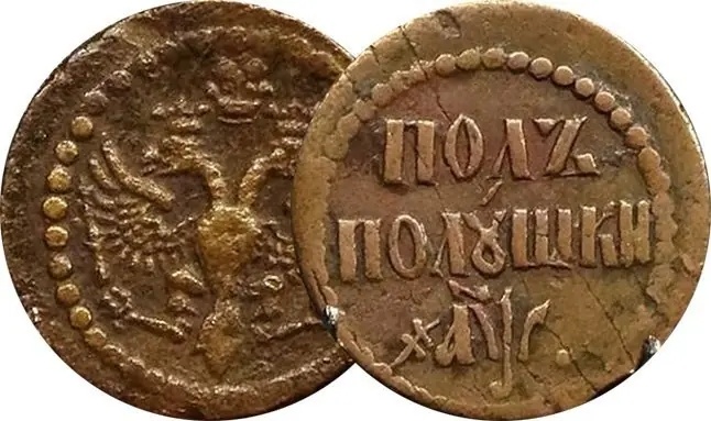 Дефицит серебра заставил Петра I провести масштабные денежные реформы и вновь заменить мелкие номиналы медью. Новые медные монеты уже не напоминали «чешую» Алексея Михайловича и выглядели как европейские образцы того времени. Царь распорядился: «Медные деньги, полушки и полуполушки делают и впредь будут делать на Москве, на денежном дворе тиснёными, а не литыми и не кованными».