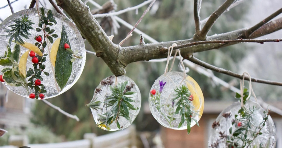1. Наморозить в силиконовых формочках ледяные игрушки на елочку во дворе.