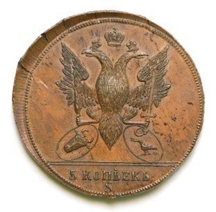 Оригинальные 5 копеек (рисунок 1) имелись в коллекции Великого Князя Георгия Михайловича (“Монеты царствования Императрицы Екатерины II.” Том II. № 249. Т. XIII, 12). Эту монету он выделяет как редкую. Изображение этой монеты используется во многих изданиях по нумизматике: Уздеников № 4904 (черта с двумя точками), Брекке № 22 (черта с двумя точками), Дьяков № 1117 (R5), Биткин № 1258 (R4). Как видно все авторы ставят очень высокую степень редкости. Ильин оценивал ее в 150 рублей. Последний раз эта монета продавалась в коллекции Антонина Прокопа 7 декабря 2002 года, лот 206 за 12.500 $ США. По всей видимости, эта монета с аукциона фирмы Канн № 66, 6 мая 1930 года, лот 1071 (к сожалению, этот лот лан в каталоге без изображения). Именно в это время известный коллекционер русских монет активно пополнял свою коллекцию.