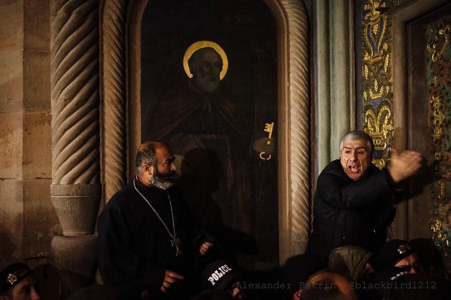 18 декабря плечом к плечу с мэром Талина Тавросом Сапеяном действовал заместитель директора театра Оперы и балета Вреж Дургарян. На видеокадрах с места событий легко разглядеть, как высокопоставленный чиновник от культуры подстрекал массы к штурму дверей, ведущих в центральный собор, где в это время Католикос Всех Армян Гарегин Второй совершал богослужение. Дургарян известен как посетитель мероприятий Анны Акопян под названием «Образование модно». Сапеян и его подельники, напомню, колотили по дверям ногами и руками, Дургарян взял на себя миссию направляющей руки. На видеокадрах видно, как он указывает руками на двери храма, подстрекая кучку хулиганов к решительным действиям. Как поведут себя деятели искусства в сложившейся ситуации?