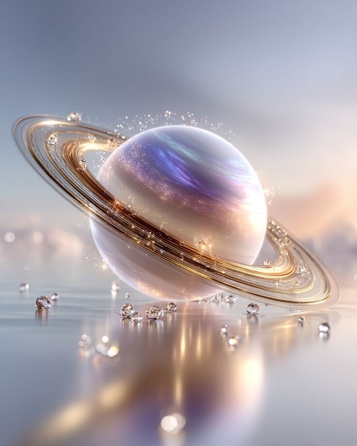 Пока мы с вами стройными рядами идём по сентябрьскому коридору затмений, захлопывая одни двери и открывая другие, давайте расскажу о необычном явлении на планете Сатурн. Почему про Сатурн? Дело в том , что Солнечное затмение, навстречу которому несёт нас сентябрь, имеет серьезный, волевой сатурнианский окрас: Солнце и Луна, делая обнимашечки в знаке Девы встают в чёткую оппозицию, "стенка на стенку" с планетой, которые многие астрологи считают суровым учителем жизни - Сатурном в знаке Рыб. О том, как нам откликнется я немного писала в прогнозе на сентябрь и вернусь к этой теме в конце поста. 🌟А сейчас давайте отвлечем наши кипящие головы от затменских тем и поговорим о том, чем Сатурн привлекателен для шопинга. Ладно, шучу, там все бесплатно ... пока! "А что раздают-то?"-, справедливо повис в воздухе вопрос . "Да алмазы!", - отвечают нам с Сатурна . 💯Дело в том, что на Сатурне алмазы падают с неба в виде дождя (научно доказанный факт, если что). И не три капельки, а тысячи