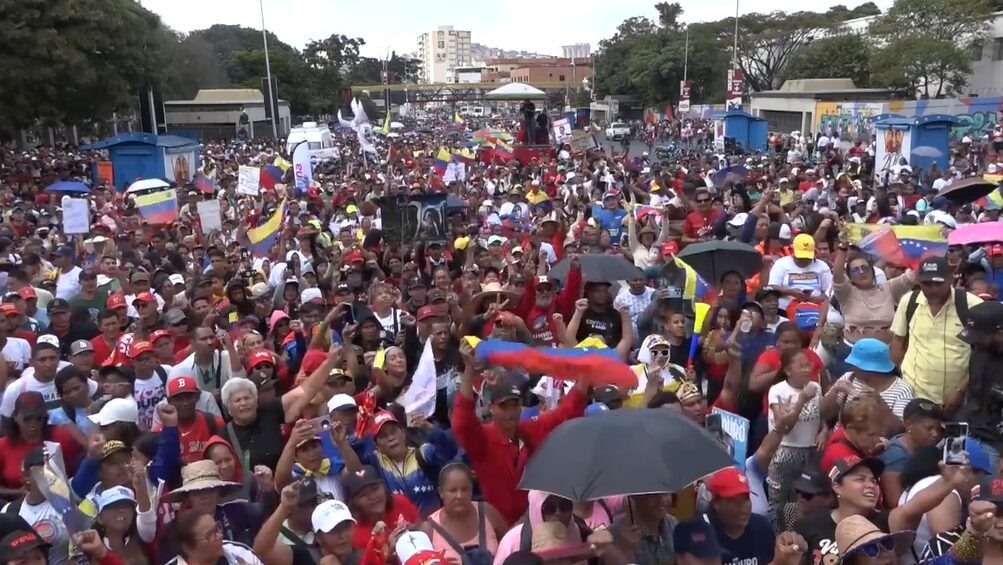 Около тысячи протестующих вышли на митинг. Венесуэльцы связаны с общинными советами и правящей Объединенной социалистической партией. В среду Партия Венесуэлы провела митинг в Каракасе, требуя освобождения бывшего президента Николаса Мадуро и его жены Силии Флорес, захваченных американскими войсками на прошлой неделе. Протестующие слушают речи, скандируют и держат в руках флаги Венесуэлы и фотографии Николаса Мадуро, а также фигурки «Супер Биготе» и «Супер Чилиты», представляющие семью. «Мы просим тебя, Трамп, вернуть нам Николаса Мадуро. Мы демократическая страна, мы страна, которая выбирает путем голосования, а не по назначению», — провозгласил один из демонстрантов. «Подойдите и представьтесь этим людям. Народ скажет вам, кто его президент. Вы никогда не будете править нами.