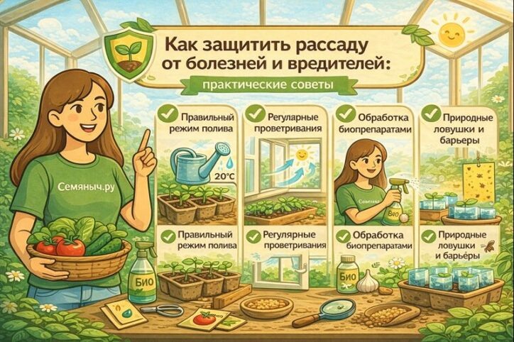 Вырастить крепкую и здоровую рассаду — задача не только увлекательная, но и требующая внимательности. Молодые растения особенно уязвимы: малейший перекос в условиях может привести к появлению грибковых заболеваний, а первые вредители способны уничтожить посадки буквально за день. Однако большинство проблем можно предупредить ещё на старте, если действовать системно и грамотно. Ниже собраны проверенные рекомендации, которые помогут вам защитить рассаду без лишней «химии» — максимально экологично и безопасно. А качественные семена для будущего урожая всегда можно выбрать в магазине Семяныч.ру, где представлено множество сортов овощных, цветочных и пряных культур. Профилактические меры часто оказываются эффективнее любых обработок. Они создают условия, в которых болезни и вредители «не находят» слабых мест. Хорошая рассада начинается с хорошего посевного материала. Надёжные поставщики проводят сортировку, проверку всхожести и при необходимости — предпосевную обработку.