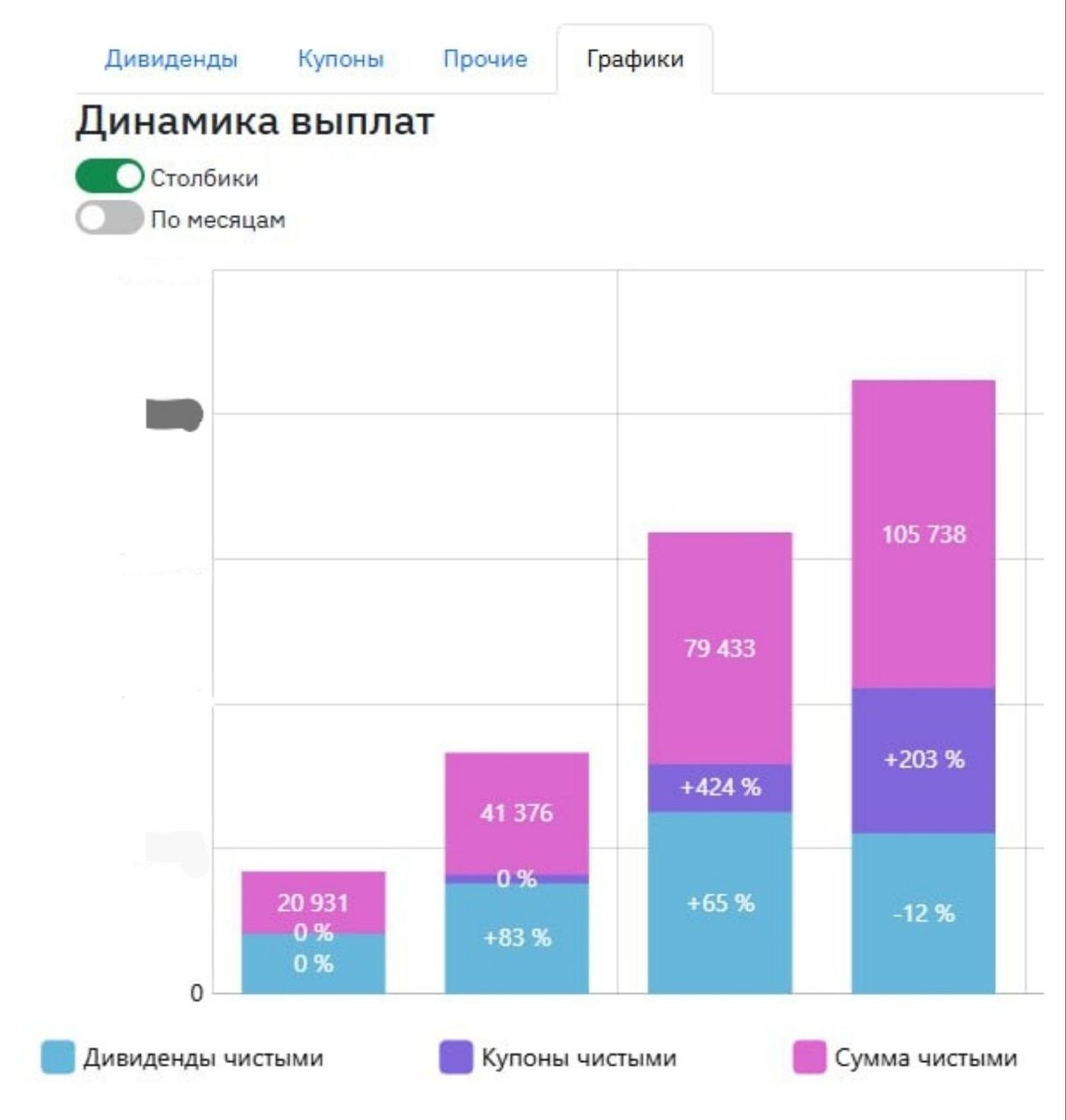 ☺️☺️☺️☺️☺️ ▶️ Всем доброго времени суток. Решил подвести промежуточные итоги моего четырехлетнего инвестиционного пути. 📈 На графике отображён пассивный доход (дивиденды и купоны) уже чистые ( очищенные от налогов) 🔍 По поступлениям видно что начинал я с акций а последние два года наращивал долю в облигациях. Пока они дают такую доходность грех не воспользоваться этой возможностью. 🛍 На сегодня доля в облигациях доходит до 39% что для себя считаю приемлемой долей. ⁉️ В этом году планирую наращивать доли и в акциях. Считаю что война близится уже к развязке. Сугубо мое мнение. ➡️ В январе жду поступления дивидендов от: ИКС 5🍏 $Х5 - 1280 руб Т-технологии 🏦 $T -126 руб Татнефть ⛽️ $TATNP - 679 руб Лукойл ⛽️ $LKOH - 5527 руб Роснефть ⛽️ $ROSN - 1227 руб ЕвроЭлтех 🎛 $EELT - 135 руб 💸 Итого: 8974 руб это только дивиденды, плюс ещё купонами с облигаций на капает 5000 - 6000 руб накрапывает в месяц Всем удачных инвестиций и зелёных портфелей !🍸 Подписывайтесь: ➡️Телеграм ➡️ П