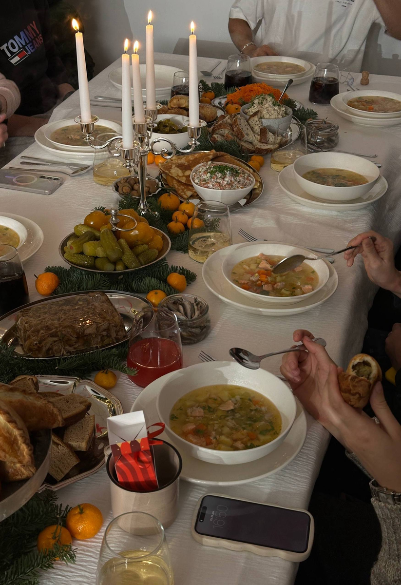 На большие корпоративы с командой мы съезжаемся раз в год (только недавно грелись в Сочи). А воронежской диаспорой собираемся чаще — поболтать, поесть, поиграть или сделать что-то творческое вместе. Поэтому перед Новым годом устроили репетицию🎄 Большой тренд на русскую кухню набирал обороты, поэтому ужин я приготовила в таком же стиле. Даже самовар купили на авито для атмосферы! В меню: ✨уха с форелью и палтусом; ✨форшмак; ✨холодец из утки; ✨блинчики по-царски; ✨пирожки с картофелем и белыми грибами. Кто тоже любит такое? Наше творческое развлечение покажу дальше 🔥 Топовая идея для досуга с семьей и друзьями ❤️ Покупаем набор для изготовления брелков из шринк пластика. На маркетплейсах стоит ~500 руб. за 10 листов. Я взяла два набора, принесла из дома маркеры и взрослые люди отлетели от кайфа…) 🔥Шаг 1. Рисуем на специальном листе все, что хочется! Лист прозрачный, можно подложить картинку и срисовать, у кого какие возможности. 🔥Шаг 2. Вырезаем получившуюся картинку по форме или ост