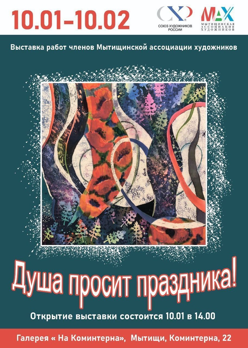 Выставка работ членов Мытищинской ассоциации художников откроется 10 января в галерее на Коминтерна, 22, сообщает администрация