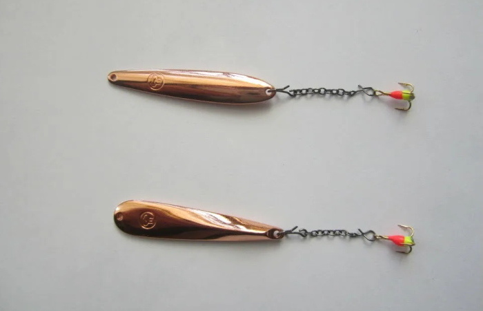 Первую подобную поклевку я получил, когда на том же Вилейском водохранилище дошел в испытаниях до бронзовой блесны. При этом на цепочке у нее был закреплен не одинарный крючок, а небольшой тройник. После второго-третьего взмаха последовал тот самый мощный стук, и окунь сел на крючки основательно, почти заглотив приманку. Это была самая быстрая и уверенная поклевка за весь день. Остальные полосатые ловились минимум после 3-4 проводок. Вряд ли дело было исключительно в тройнике.