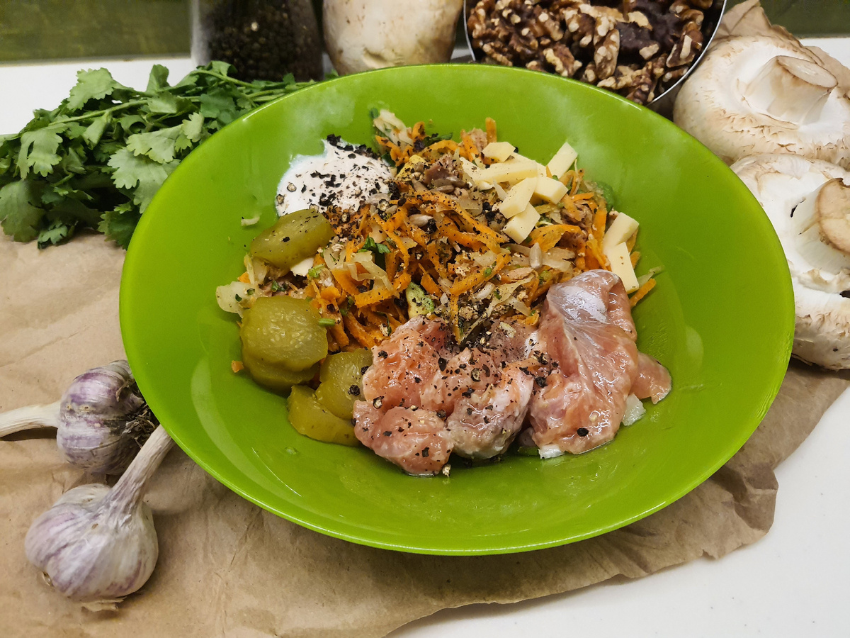 2. Кето-винегрет с сугудаем из горбуши + 10 г сыра
